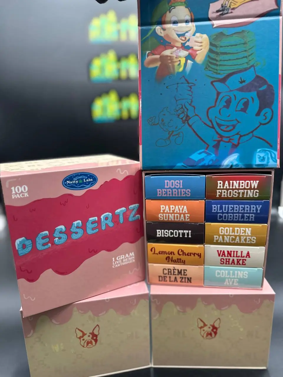 | Flavors | Biscotti, Dosi Berries, Papaya Sundae, Lemon Cherry Natty, Collins Ave, Vanilla Shake, Golden Pancakes, Rainbow Frosting, Blueberry Cobbler, Creme De La Zin |