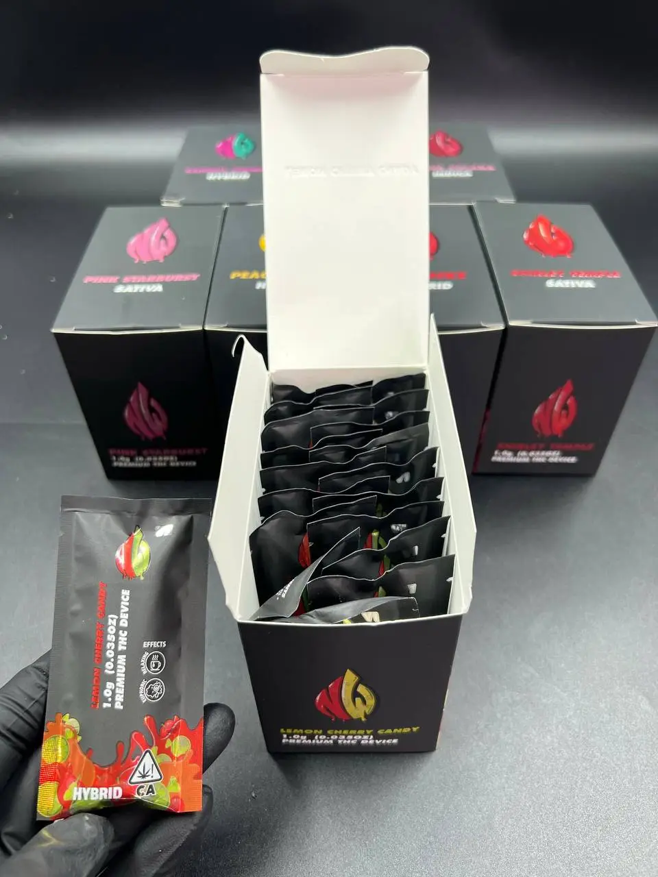 Flavors Lemon Cherry Cnady (Hybrid), Rainbow Sprinkles (Hybrid), Jet Fuel (Indica), Guava Colada (Indica), Pink Starburst (Sativa), Peach Rings (Hybrid), Pop Rockz (Hybrid), Shirley Temple (Sativa)