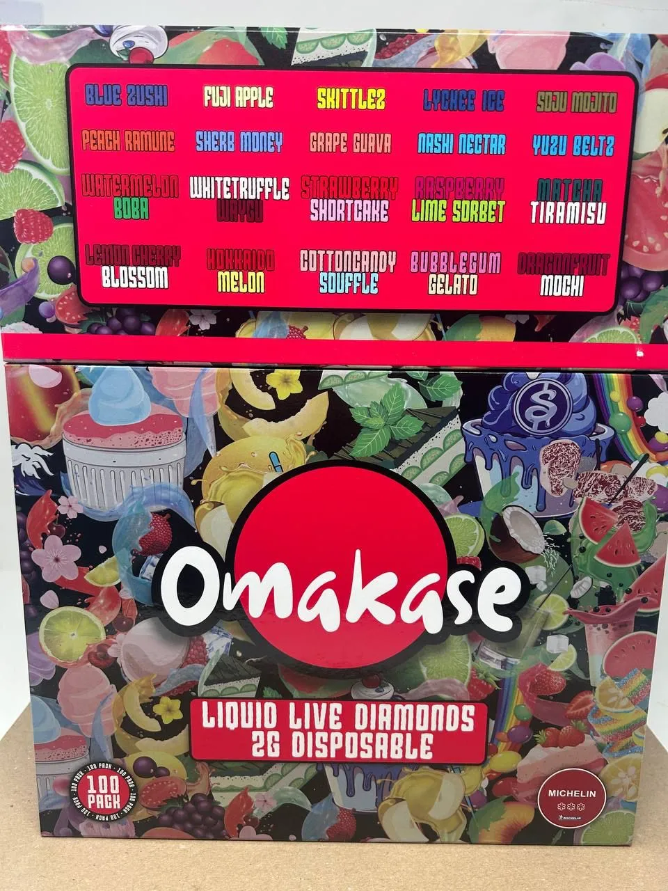 | Flavors | Blue Zushi, Fuji Apple, Skittlez, Lychee Ice, Soju Mojito, Peach Ramune, Sherb Money, Grape Guava, Nashi Nectar, Yuzu Beltz, Watermelon Boba, Whitetruffle Waygo, Strawberry Shortcake, Raspberry Lime Sorbet, Matcha Tiramisu, Lemon Cherry Blossom, Hokkaido Melon, Cottoncandy Souffle, Bubblegum Gelato, Dragonfruit Mochi |