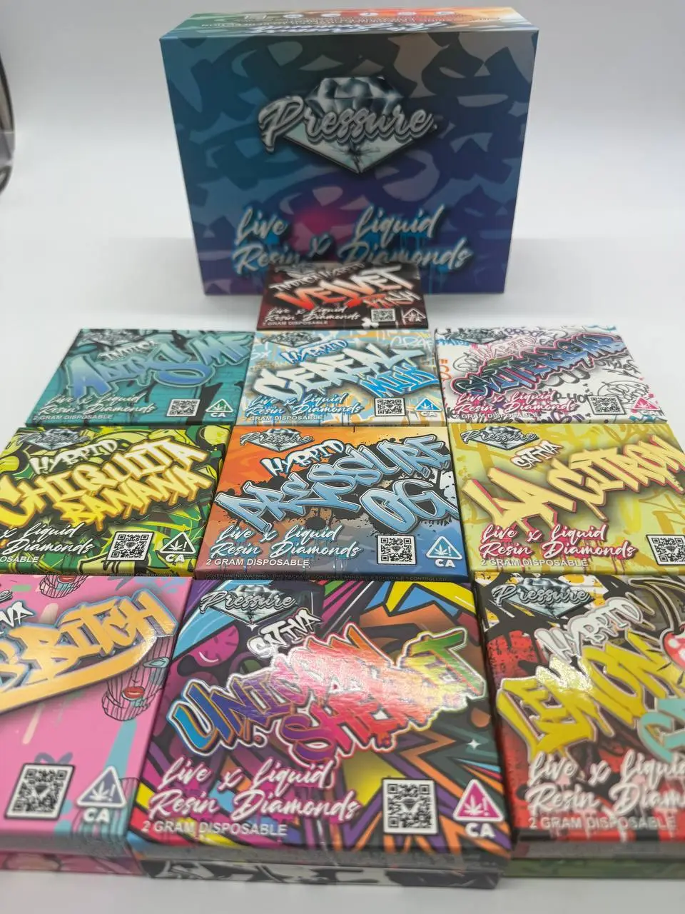 | Flavors | Pressure OG, Space Cake, Chiquda Banana, Unicorn Sherbet, Russian Cream, 8 Ball, Grapes N Cream, Boss Butch, Kill Latto, LA Citron, Pink Panties, Cereal Milk, Lemon Gelato, Godfather OG, Papaya Bomb, Velvet Kush, Dulce Pina |