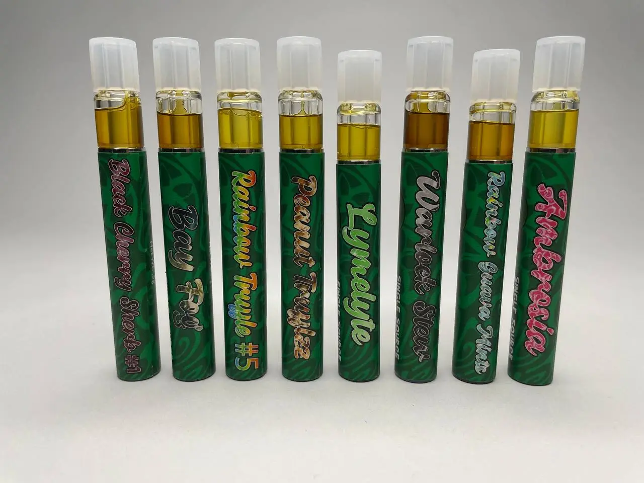 | Black Cherry Sherb, Lymelyte, Peanut Truffles, Rainbow Guava Mintz, Rainbow Truffle #5, Waelock Stew, Bay Fog, Ambrosia |
